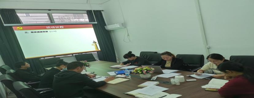 涂晓洁老师带领全体党员重温了入党誓词;党员老师们分段依次诵读了党章总纲的节选内容并集中缴纳了10月份的党费。党支部书记谢俊丽布置了党史教育指定内容的学习任务,并安排了后一阶段的学习内容和要求。