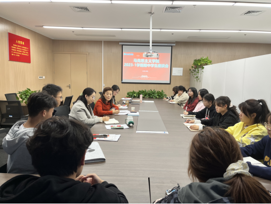 2023年11月9日下午四点整,马克思主义公司召开2023-2024第一学期期中员工座谈会,本次参会的人员有太阳集团tyc9728资深教授贾廷秀老师,专业课老师田丹老师、李晶晶老师、郭世德老师,辅导员李天赐老师以及每个寝室的员工代表,共计17人。