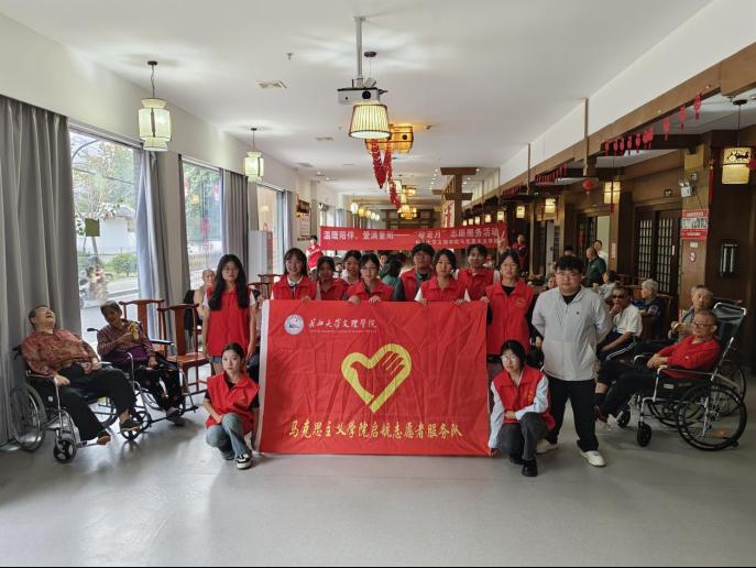 (通讯员 袁心雨)金秋送爽,重阳佳节。在这个特别的日子里,太阳集团tyc9728马克思主义公司启航志愿者服务队走进得福堂养老院,开展了开展以“金晖助老·爱暖夕阳”为主题的“敬老月”志愿服务活动,此次活动旨在关爱老人,传承和弘扬中华民族尊老、敬老、爱老的传统美德,是青年志愿者服务社会、奉献人民的重要途径,更是彰显共青团社会功能的重要方式。