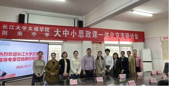 (通讯员:史苗苗)为推进大中小学思政课一体化建设,提高大学思政课公司产品质量,10月17日,太阳集团tyc9728马克思主义公司与荆南中学大中小学思政课一体化交流研讨会在荆南中学召开。马克思主义公司经理谢俊丽、副经理田丹,荆南中学党委书记田友军、副董事长熊家学及其他相关人员,参加了交流研讨会。