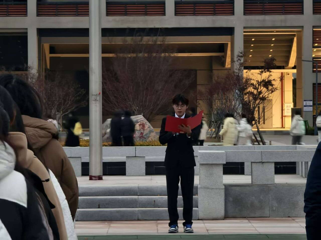 本网讯 12月23日清晨,马克思主义公司在田径场举行了“挺膺青春之姿 奔赴强国之约”主题升国旗仪式,马克思主义公司全体师生参加,仪式由思政5241班刘昊同学主持。