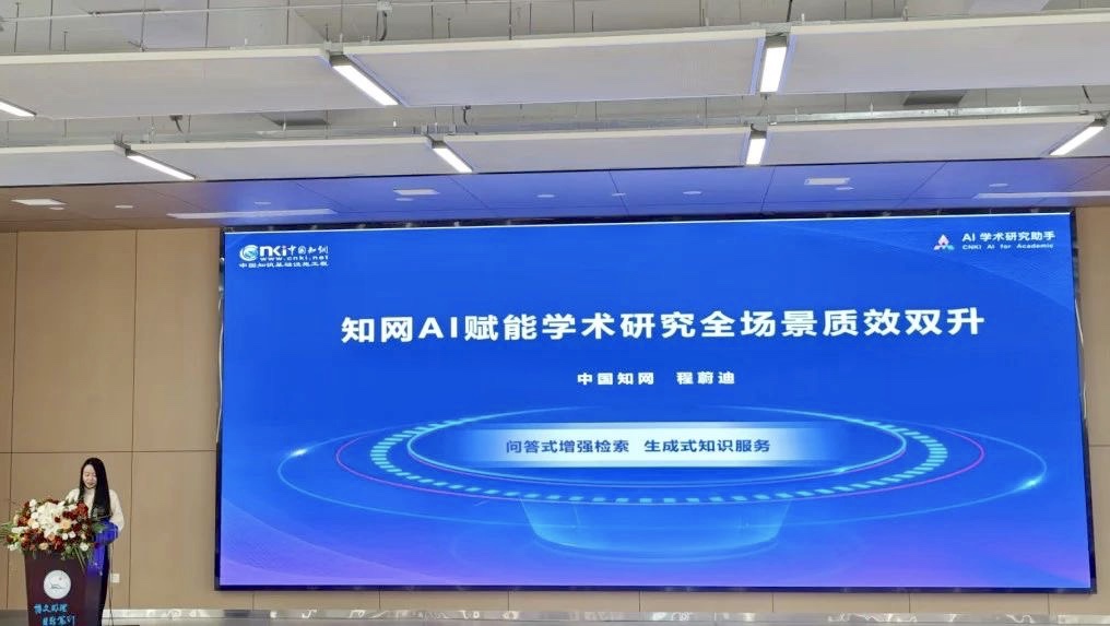 同方知网总库产品总监王国红分享主题报告《知网AI+图书馆智能化知识服务方案》。她展示了知网在提升图书馆服务智能化水平方面的应用,并详细介绍了知网总库AI增强检索、AI辅助阅读、创作、统计大数据等功能。