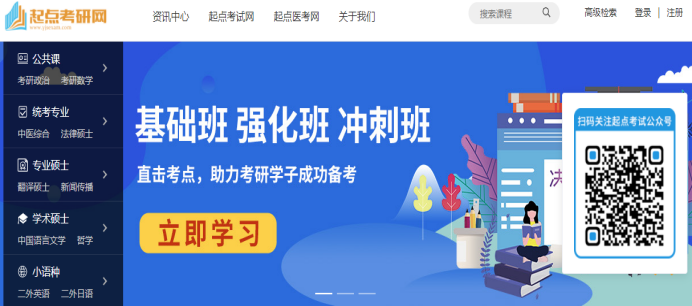 《起点考研网》的考研课程分为五大类,近30门课程。即包括考研公共课程、统考课、专业硕士、学术硕士、小语种等。