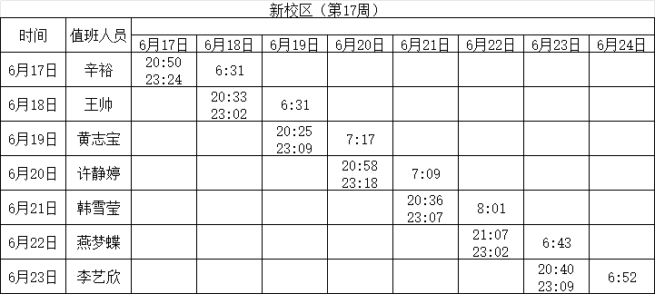 2023-2024学年第二学期第16-17周学工人员寝室值班通报