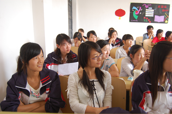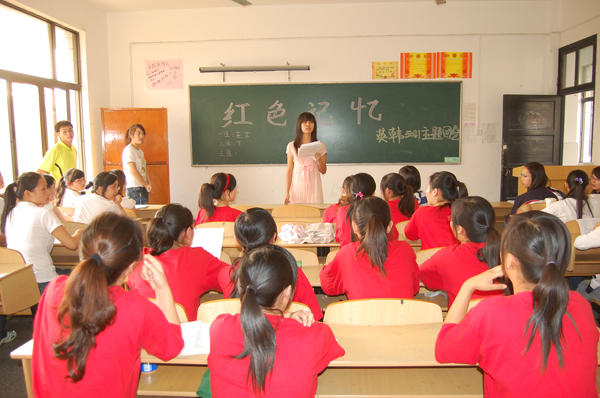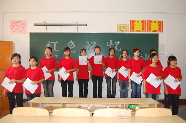 “八月桂花遍地开,鲜艳的旗帜竖啊竖起来,张灯又结彩呀,光辉灿烂闪出新世界……”雄浑嘹亮的歌声和热烈的掌声不时从一教飘出,散落在整个校园,这是外语学部各班团委为迎接祖国生日精心准备的班级活动。活动的第一项是唱红色歌曲,抒发爱国情怀。歌曲《十里送红军》唱出了浓浓的军民鱼水情,《在灿烂阳光下》表达了同学们的拳拳爱国心。英韩5082班采用分组比赛唱红歌形式,极大地调动了大家的积极性;活动第二项红色革命教育,激励所有师生永远缅怀那些千千万万不留姓名却前仆后继为革命事业英勇献身的革命先烈,学习他们坚强勇敢的精神,激发大家的爱国心。英语5083班独具特色,用话剧的形式演绎了十三岁的女英雄刘胡兰从被捕到牺牲的过程,男女主角曾毅、周旋的精彩表演使刘胡兰英勇的形象深刻地映在了大家的脑海中,刘胡兰在敌人威逼利诱之下大义凛然,毫不屈服的精神让观众感动不已,与亲人诀别时的场景更让所有的人潸然泪下。“十三岁,我们还在父母温暖的双翼之下接受呵护,而刘胡兰却已经能够为国家和人民的利益献身,为大家,舍小我,她的精神值得我们钦佩。”刘胡兰的扮演者周旋说道;随后,各班还进行了建国历史知识竞赛,同学们的热情也达到了高潮。