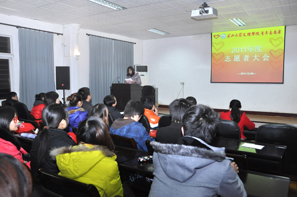 本网讯(通讯员 黄梦婷)12月5日晚,院团委2010学年青年志愿者行动总结表彰大会在学术报告厅举行。学工处及各学部相关负责老师、100余名志愿者代表参加会议。大会对2010学年表现突出的青年志愿者进行表彰,并授予周扬雪等29名同学“优秀志愿者”称号。