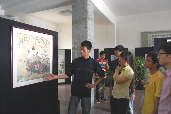 下午四点,交流会结束后,公司书法协会会长秦巨森带领着兄弟公司的朋友们参观了一教大厅前的书画展,同学们纷纷畅谈对艺术的理解,分享独特的创作经验。