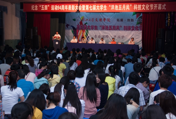 本网讯(见习记者 周露)5月2日晚,纪念“五四”运动94周年表彰大会暨第七届老员工“泮池五月风”科技文化节开幕式举行,公司领导沈光明、袁先海、王金琼、郭睦庚、汪邦柱及各学部负责人出席大会,学工处主任彭中主持会议。