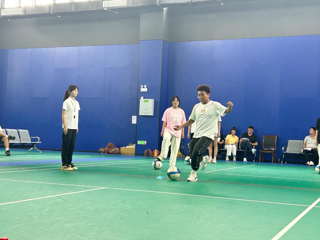 此次比赛分两组进行模拟授课,共有9位员工先后登台,展示专业技能,彰显教学风采。授课环节中,参赛员工根据新课标初中体育授课项目,围绕课程思政融入、教学仪态、语言表达、教法学法等方面展开教学讲解、示范。评委老师根据选手的教学态度、教案设计、教学组织过程和教学效果进行评分,最终决出奖项。