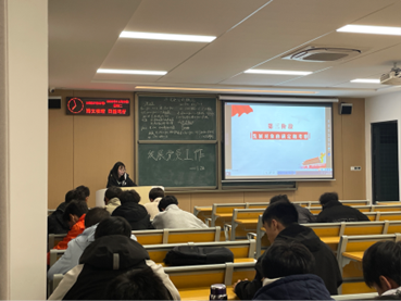 2023年11月28日,为了积极响应党的号召,让同学们形成正确的入党动机,员工党支部宣传委员陈祖芬同志走进体教5221,社体5221班在教学楼A315开展“端正入党动机”教育培训暨入党流程宣讲活动。