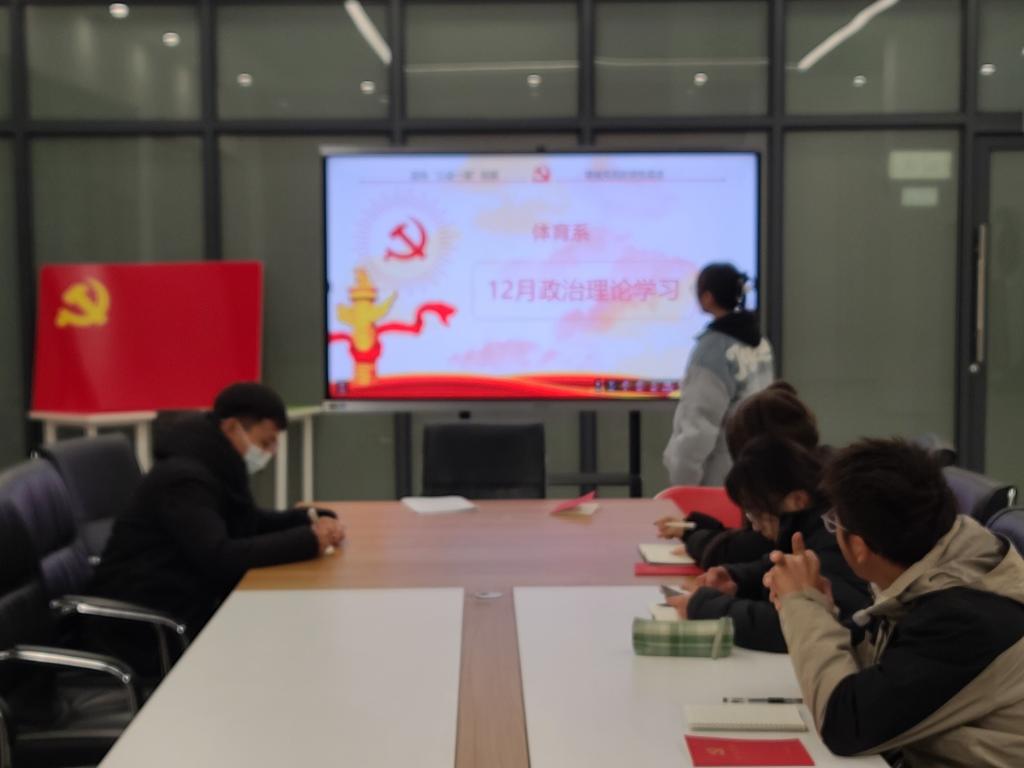 本网讯(通讯员 张喆)12月21日,体育系员工党支部在体育系309会议室开展了12月份政治理论学习,会议由门世豪老师主持。