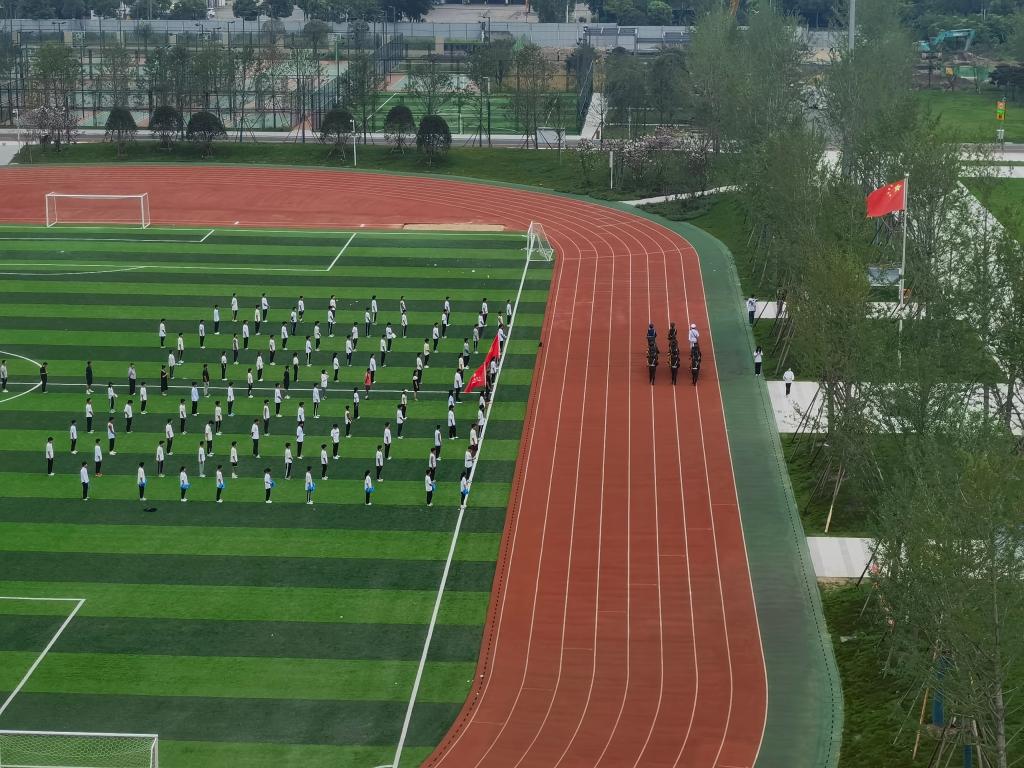 本网讯(通讯员 张欣)7月3日清晨,体育系举行以“红心向党,华彩少年”为主题的升旗仪式,全体师生齐聚国旗下,并邀请公司经理助理曹骥老师出席此次庄重仪式。