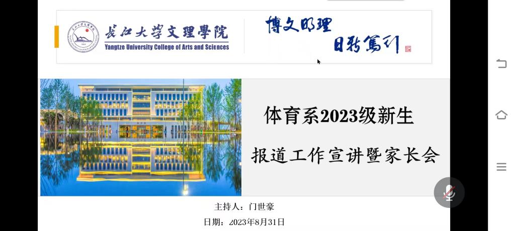 本网讯(通讯员 黄金艳)2023年8月31日,为迎接体育系2023级专升本新生和体育系本科新生,辅导员门世豪老师为此召开了线上“体育系2023级新生报到工作宣讲暨家长会”,会议效果良好,解答了新生的各类问答。