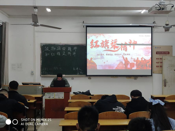 第三部分要求我们青年做好新一代“护渠人”。团支书主要向我们展示了一些当代最美护渠人的典型示例,几年来,他们无论寒冬腊月还是炎炎夏日,每天用坚定的脚步丈量堤坝,用一次次的巡视保渠平安,平凡的行动体现了老党员永葆“一渠清水”的初心,让同学们感动不已且暗暗发誓要肩负时代的使命。