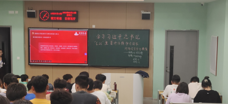 为进一步增强历史责任感和使命感,坚定听党话、跟党走的理想信念,紧紧围绕新时代新征程党的中心任务,团结凝聚广大青年在中国式现代化建设中挺膺担当,体育系各团支部于9月13日开展“学习习近平总书记“6.26”重要讲话精神”主题团课活动。
