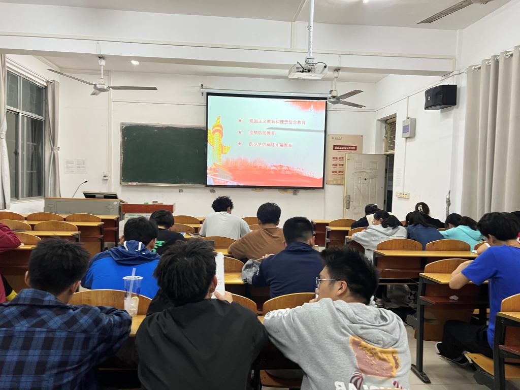 (通讯员门世豪)9月25日晚,体育系2021、2022级全体员工分至各班,同时开展了“喜欢二十大 青春在行动”主题班会活动。此次班会由各班班主任(体教5211徐勇;体教5221、社体5221姚立、体教5222谢侨侨)主持,辅导员门世豪全程指导,依次从爱国主义和理想信念,疫情防控,防范电信诈骗三个方面进行。