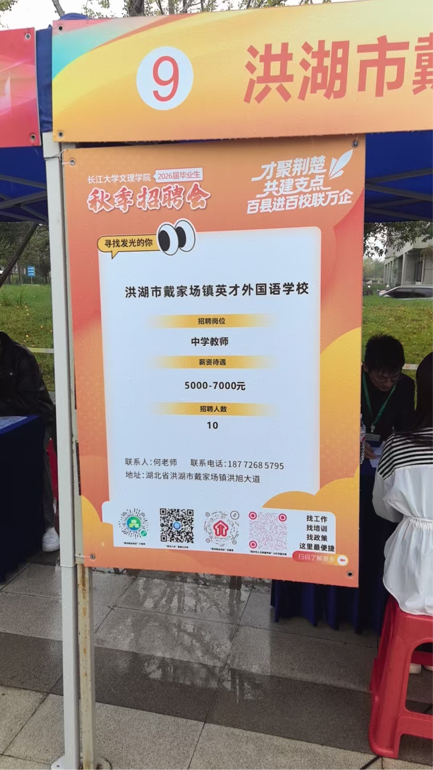 从现场招聘信息看,基础教育领域团队需求旺盛。多家公司提供了中学教师岗位,薪资待遇集中在5000-7000元/月,招聘人数较多,展现了地方教育事业对新鲜血液的渴望。例如,洪湖市的两所公司均计划招聘10名中学教师;荆州成丰公司也提供了10个教师岗位,另有公司专门招聘初中政治教师2名。各展位前,毕业生们积极投递简历,与招聘单位负责人深入交流,详细了解岗位要求、发展前景及待遇情况。