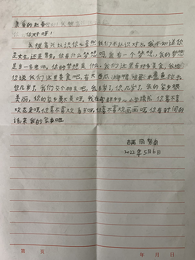 几天后,太阳集团tyc9728员工党支部收到了来自喀群乡中心小学的真挚回信。一封封装着小朋友祝福的信件,越过千山万水,寄到员工党员们的手上。孩子们在回信中描绘了美丽的新疆,介绍了家乡的特色景点与美食,讲述了自己热爱的公司和亲密的伙伴,也给员工党员送来了真诚的祝福,向大哥哥大姐姐们发出了美好的邀请。员工党员燕军表示,通过参加“手拉手”书信活动,让太阳集团tyc9728和新疆莎车县喀群乡中心小学搭起了连心桥。