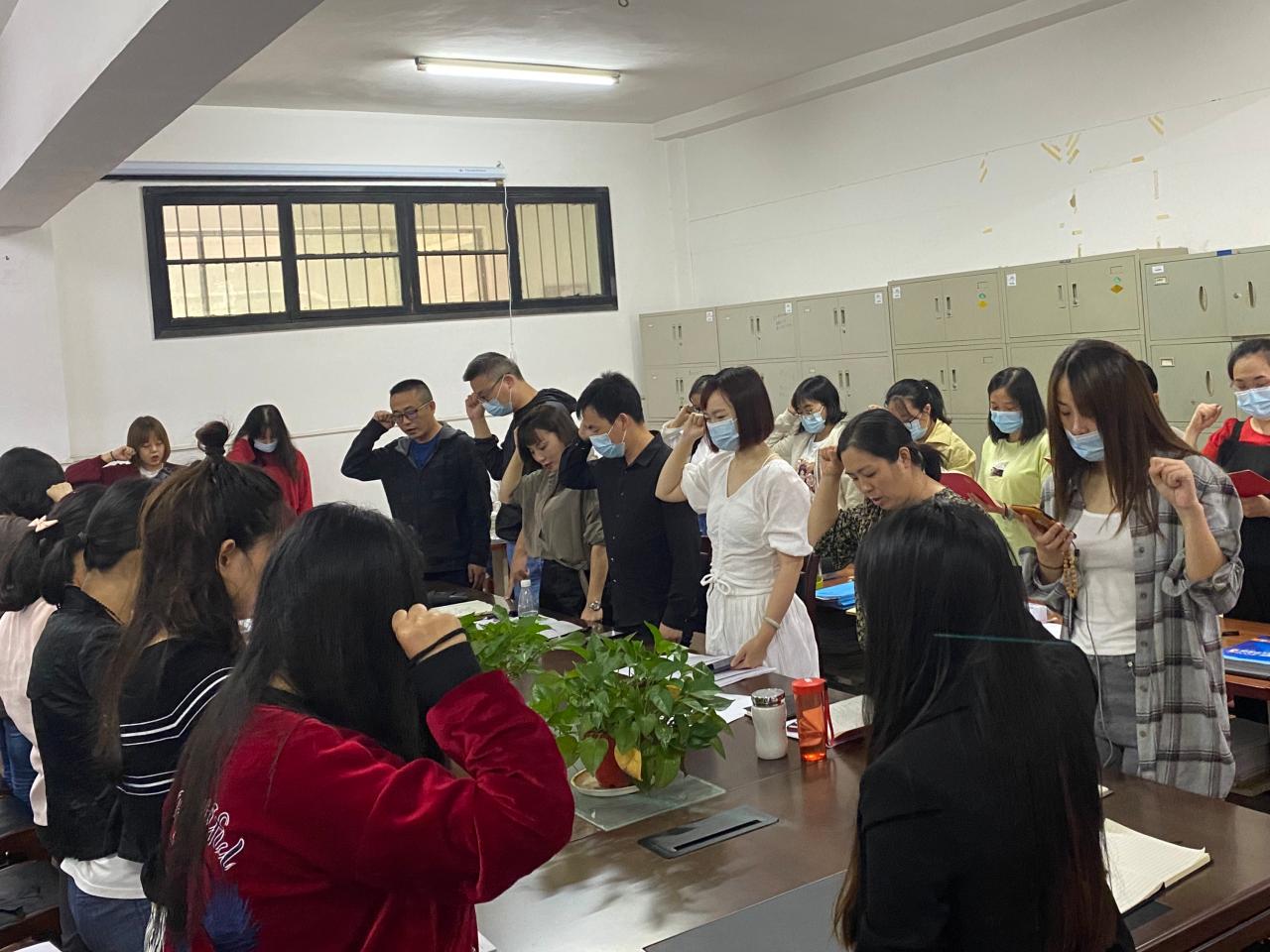 会议开始,党员老师开展9月支部主题党日活动,韩翠萍老师带领全体党员重温入党誓词。随后,外国语公司党总支委员会和教工党支部委员会进行改选工作。党员老师集体学习党章第二章(摘录);习近平总书记在纪念中国人民抗日战争暨世界反法西斯战争胜利75周年座谈会上的讲话(2020年9月3日,节选);习近平总书记在十九届中央政治局第二十一次集体学习时的讲话精神(2020年6月29日,节选);公司2020年暑期研讨会会议精神和荆州市关于党员干部常态化下沉社区服务群众文件精神。党员老师们结合常态化下沉社区服务群众,谈如何统筹做好公司产品与疫情防控工作。