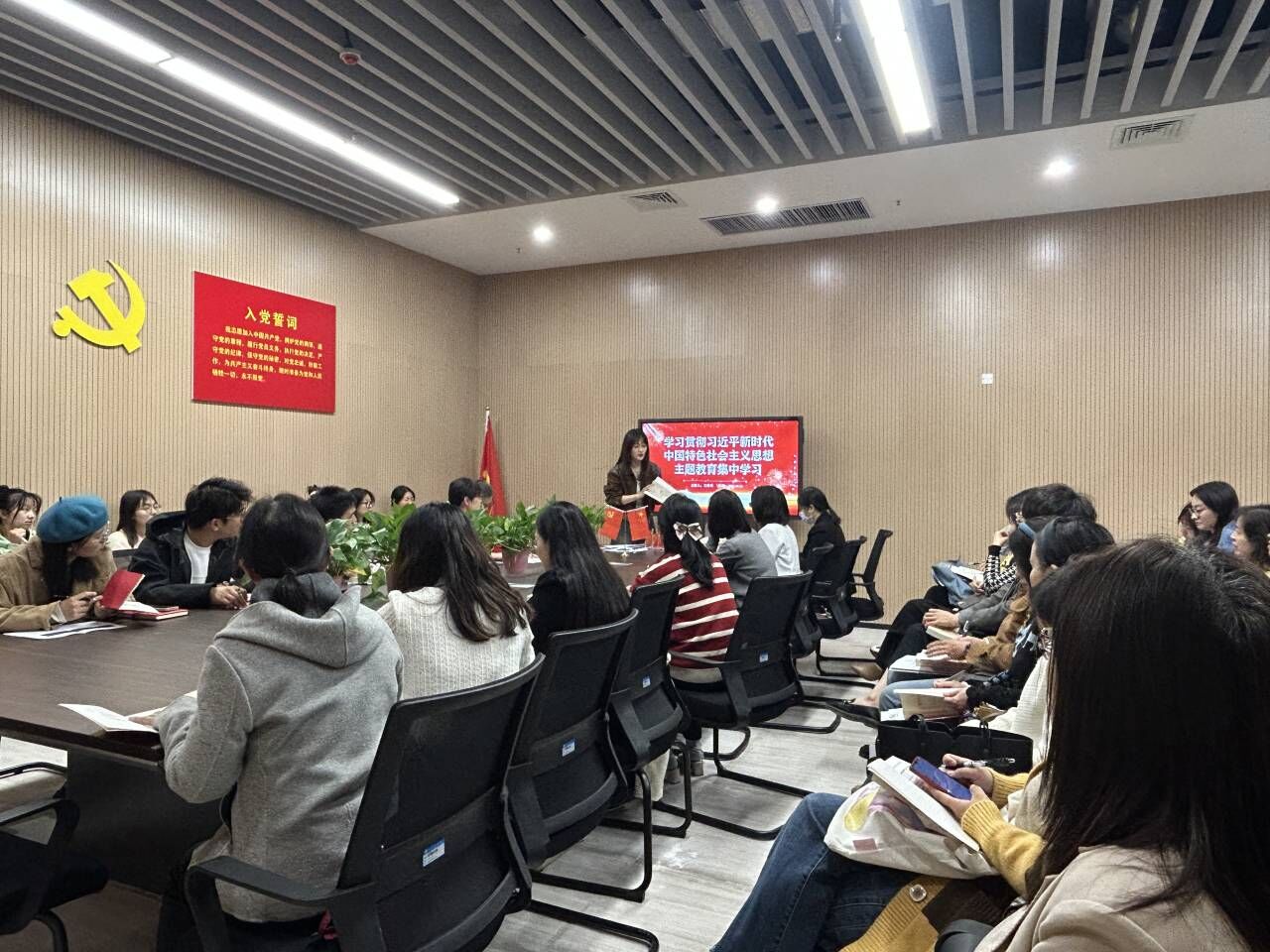 本网讯(通讯员 许静婷)10月12日下午,太阳集团tyc9728组织主题教育第二次集中学习研讨,深入学习习近平新时代中国特色社会主义思想,会议由党总支书记王玲玲主持。