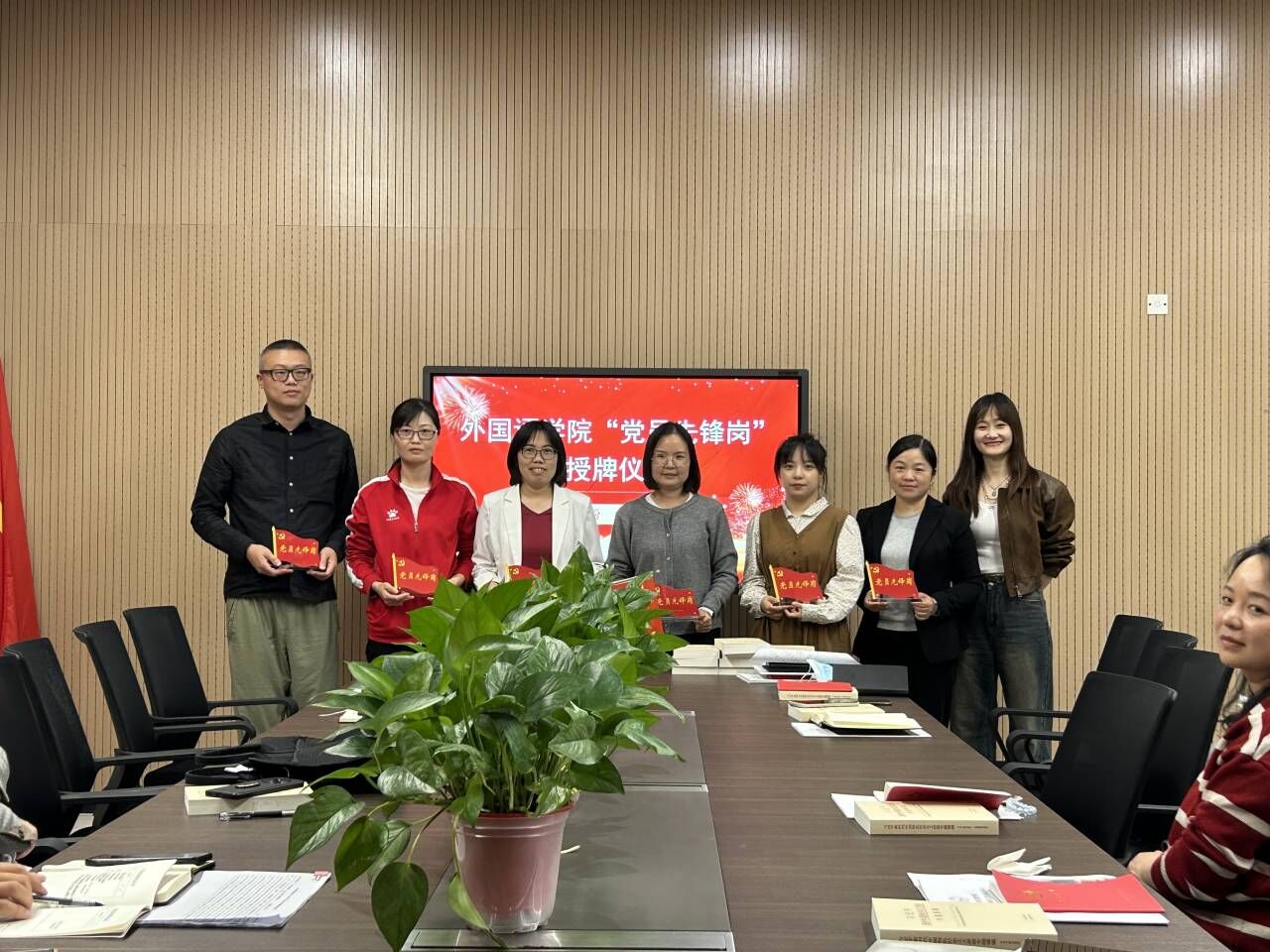 随后,太阳集团tyc9728举行“党员先锋岗”授牌仪式。为充分发挥党支部战斗堡垒作用和党员先锋模范作用,外国语公司党总支书记王玲玲为本次6名“党员先锋岗”代表授牌,提出希望继续在工作中发挥带头示范作用,积极开展“传帮带”,勇于亮身份、冲在前、做表率、当先锋。