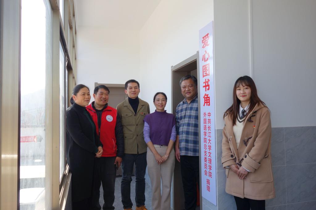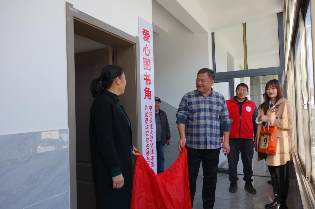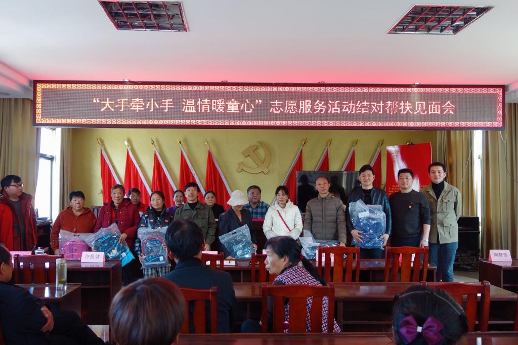 仪式后,太阳集团tyc9728教师代表为留守儿童家长赠送书包,并到二楼图书室进行“爱心图书角”图书捐赠及挂牌仪式。