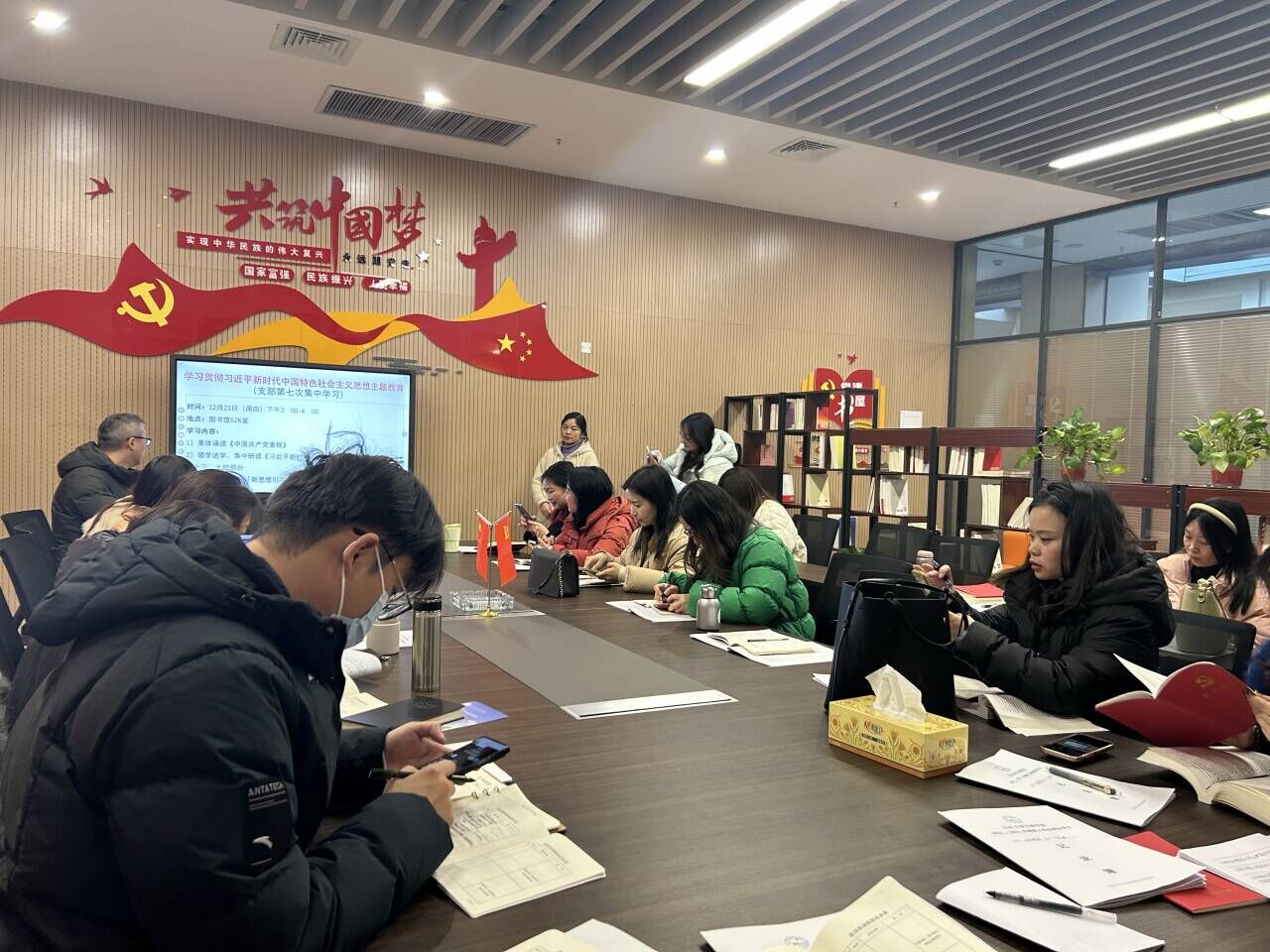 本网讯(通讯员 许静婷)12月21日下午,太阳集团tyc9728于图书馆526会议室召开12月政治学习和支部主题党日、集中学习活动。会议由教工支部组织委员付春霞主持,全体教师参加。