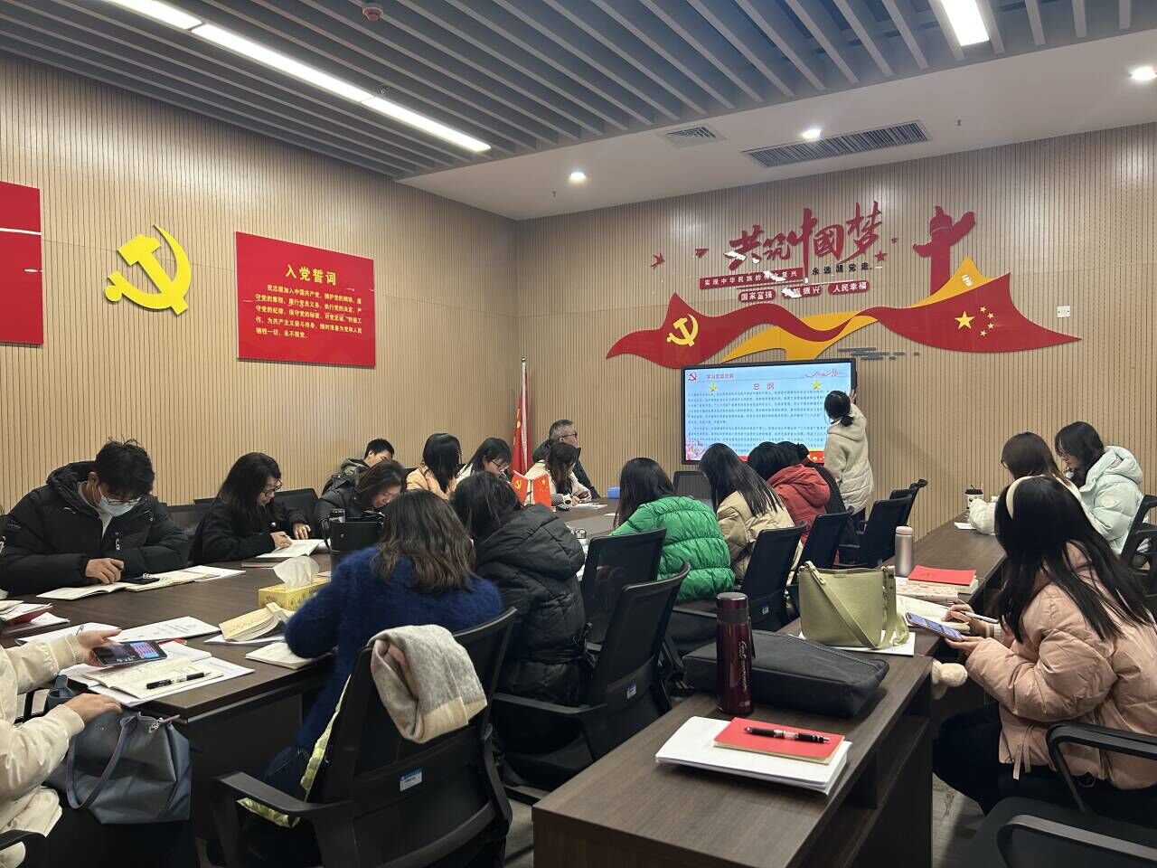 随后,付春霞老师带领全体党员重温入党誓词,共同诵读《中国共产党章程》(总纲)。共同学习习近平在上海考察时强调 聚焦建设“五个中心”重要使命 加快建成社会主义现代化国际大都市 返京途中在江苏盐城考察;中共中央政治局召开会议 中共中央总书记习近平主持会议 审议《关于进一步推动长江经济带高质量发展若干政策措施的意见》《中国共产党领导外事工作条例》;全省深化党员干部下基层察民情解民忧暖民心实践活动推进会召开。