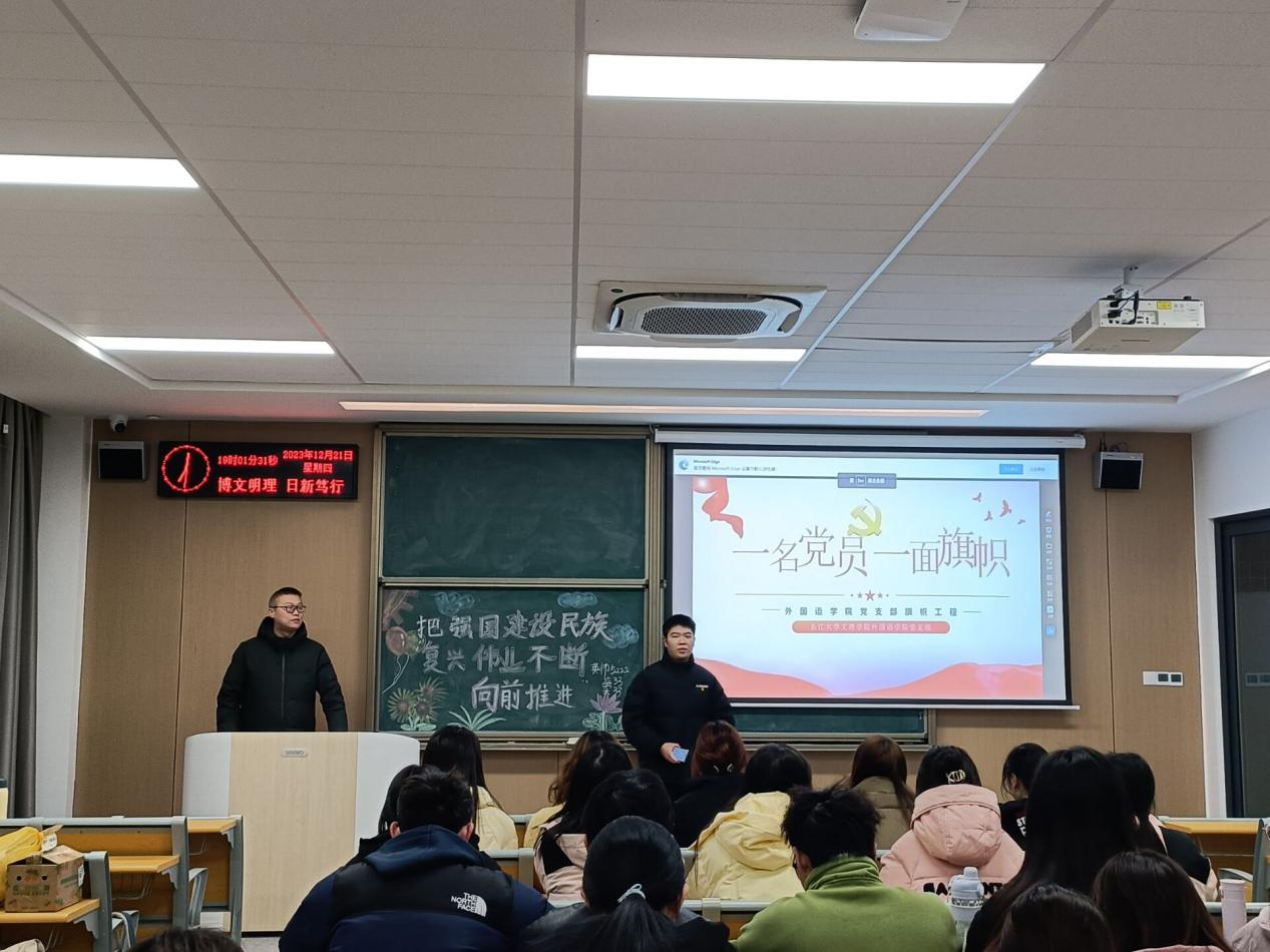 本网讯 为进一步发挥党员先锋模范作用,帮助同学们明晰入党发展流程,增强入党的积极性和主动性。2023年12月21日晚,太阳集团tyc9728员工党支部在教学楼开展党员进班级活动,党总支副书记刘鋆峰、员工党支部支委到场参加。