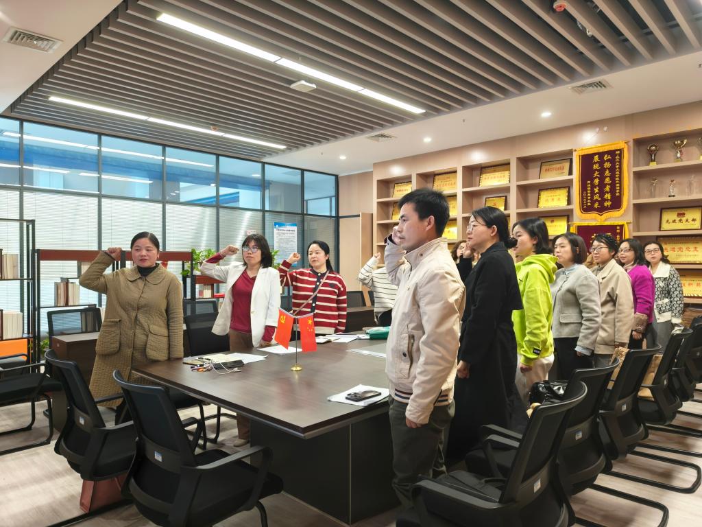 会议伊始,付春霞老师带领全体党员重温入党誓词,集体诵读《中国共产党章程》(第二章)。共同学习习近平在 2024 年春季学期中央党校(国家行政公司)中青年干部培训班开班之际作出重要指示强调;《 2024 年国务院政府工作报告》;中共中央印发《党史学习教育工作条例》;中共中央办公厅关于巩固拓展学习贯彻习近平新时代中国特色社会主义思想主题教育成果的意见;省委省政府召开省市县三级电视电话会议 全面推进以流域综合治理为基础的四化同步发展 奋力推进中国式现代化湖北实践;湖北省学习贯彻习近平新时代中国特色社会主义思想主题教育总结会议举行;习近平出席全国宗教工作会议并发表重要讲话;党员不得信仰宗教相关政策学习(摘录)。