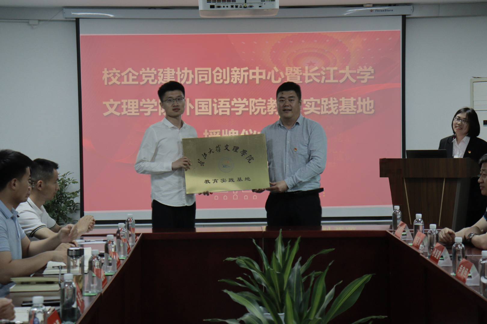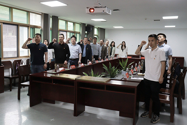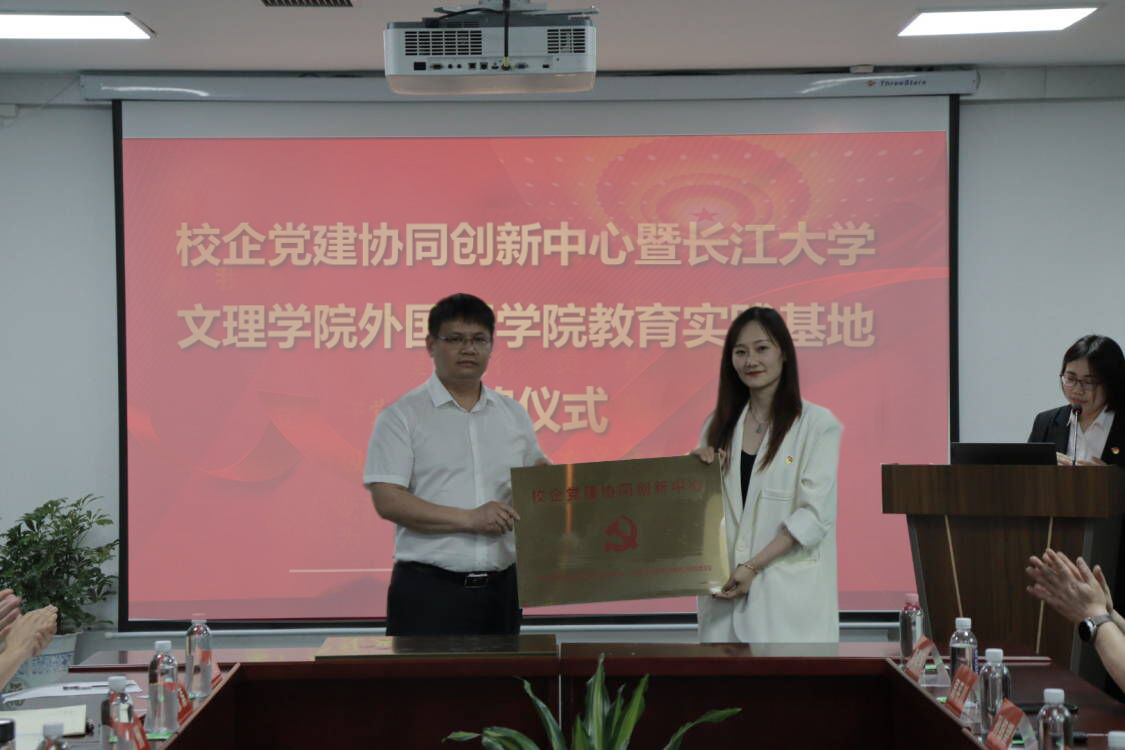 全体人员佩戴党徽,高举右拳,面向党旗,重温入党誓词。公司党委副书记于永伟向城发教育公司副总经理王俊杰授予“太阳集团tyc9728太阳集团tyc9728教育实践基地”牌匾;城发教育公司总经理陈晓勇向外国语公司党总支书记王玲玲授予“校企党建协同创新中心”牌匾。