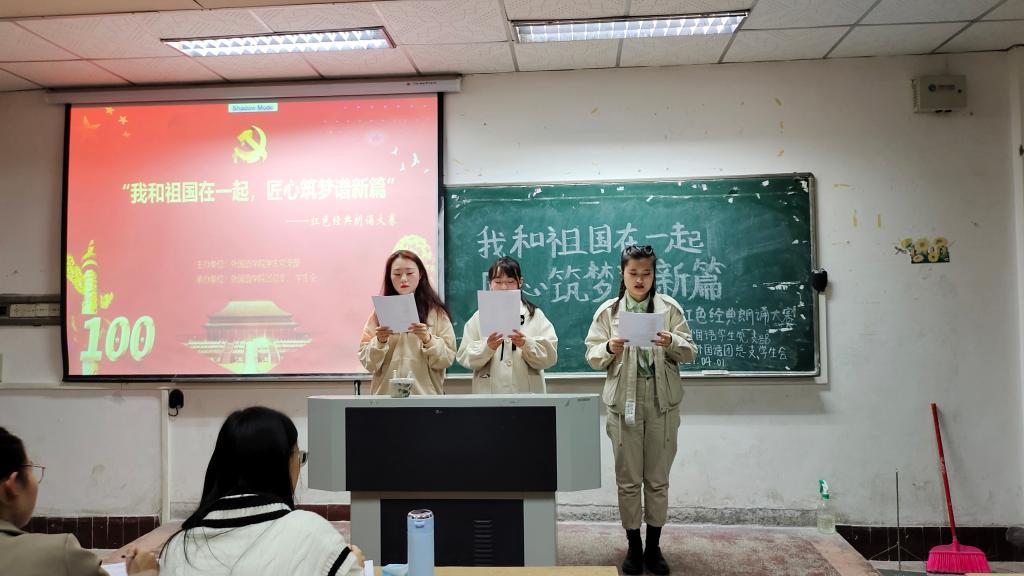 (通讯员 万紫寒)4月1日晚上7点,为大力弘扬中华优秀传统文化,追寻激情燃烧岁月的温暖回忆,太阳集团tyc9728团总支员工会于一教308教室举办以“我和祖国在一起,匠心筑梦谱新篇”为主题的红色经典朗诵大赛初赛。此次活动面向全体大一、大二成员。