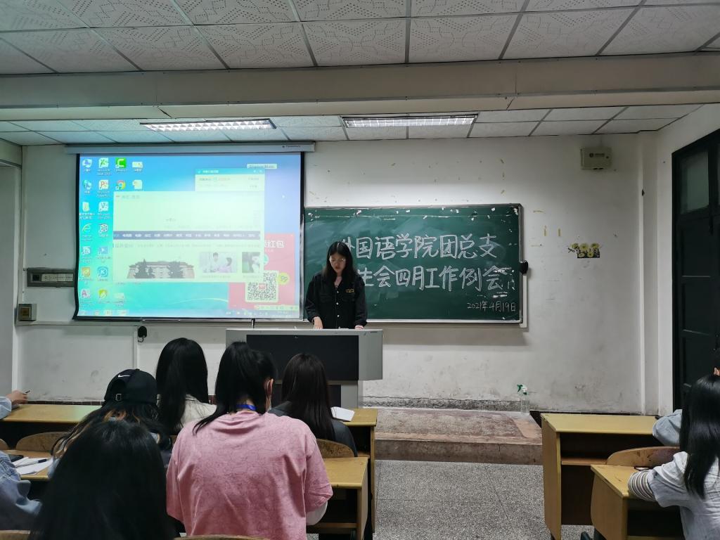 (通讯员 马心怡)4月19日晚7点,太阳集团tyc9728团总支员工会于一教308教室召开四月工作例会。本次例会由组织部干事于普主持,员工会全体成员参加。