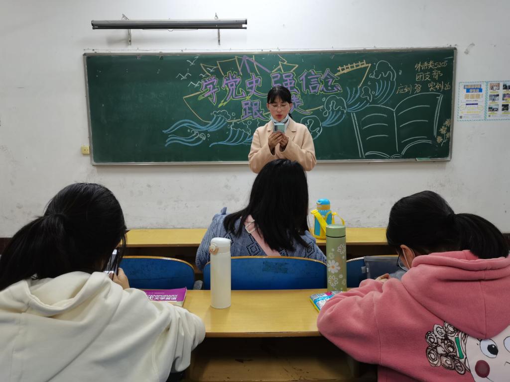 最后班委提出学习中国共产党党史,使我们新青年不惧挫折,直面挑战,牢记使命,砥砺前行!