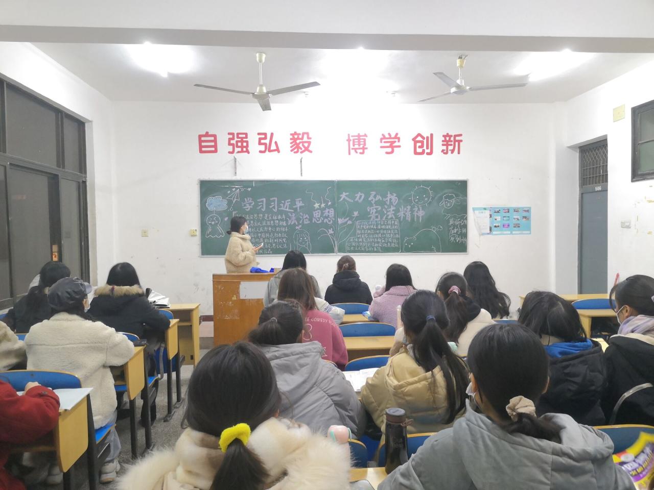 (通讯员 张瑜、王媛)12月3日晚7点,太阳集团tyc9728各班组织开展“学习‘习近平法治思想’,大力弘扬宪法精神”主题团课。本次团课由各班班委主持。