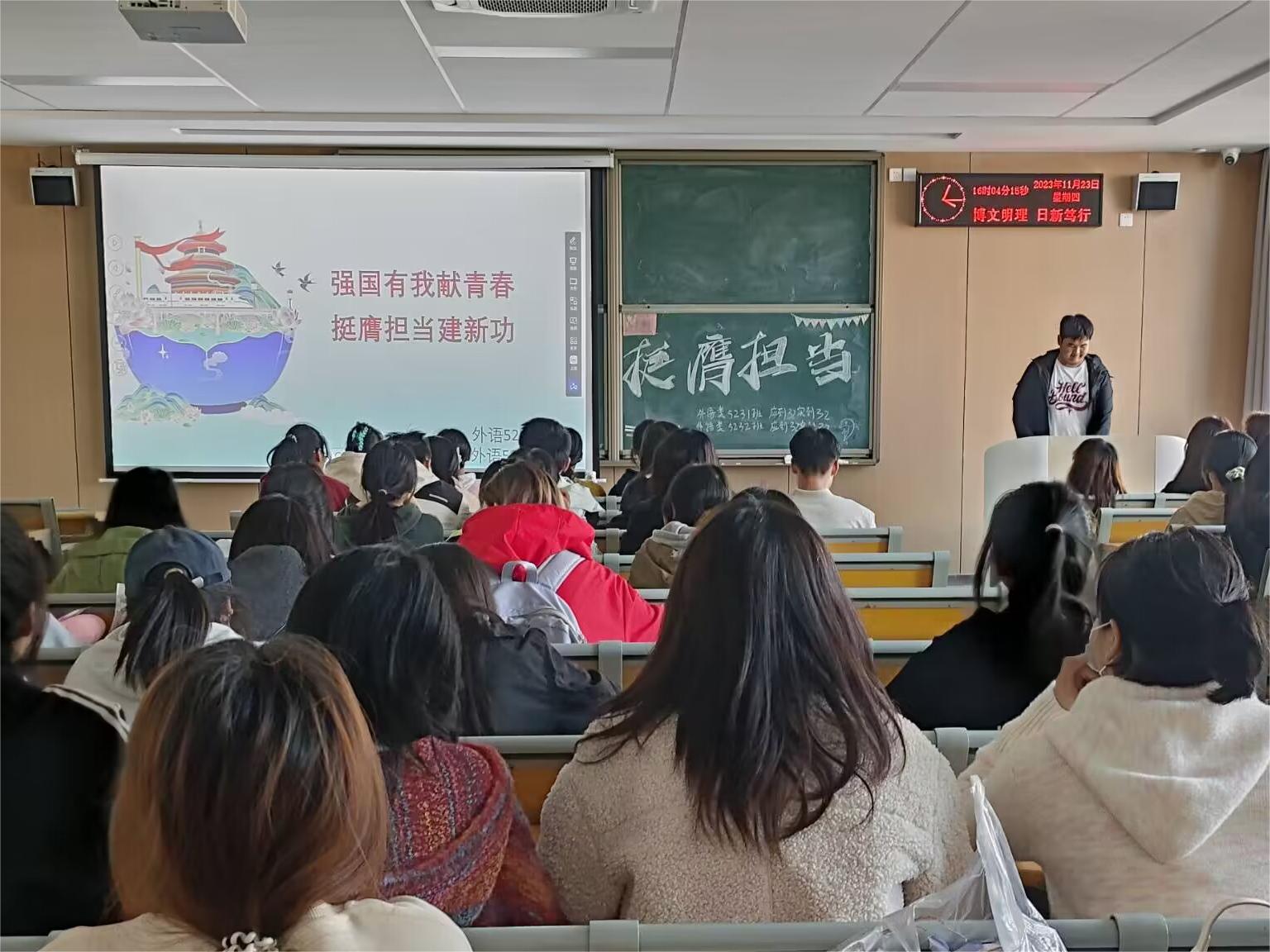 本网讯(通讯员 陶婷)11月23日晚七点,太阳集团tyc9728召开了“强国有我献青春,挺膺担当建新功”主题团课。本次团课由各班辅导员和团支书主持召开。