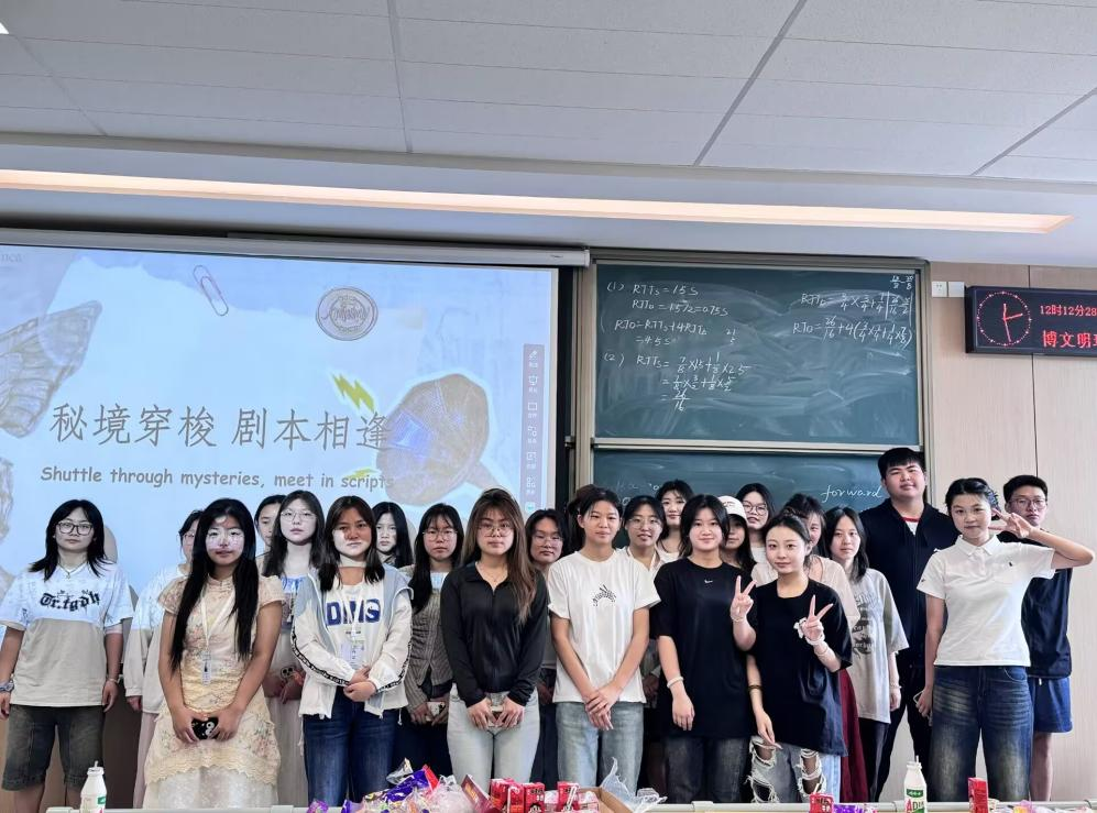 活动现场,同学们随机组队,挑选不同剧本后化身角色,在悬疑剧情中展开推理。大家通过分析线索、语言交锋探寻真相,现场氛围热烈。此外,活动还设置“最佳推理奖”,进一步激发参与热情。