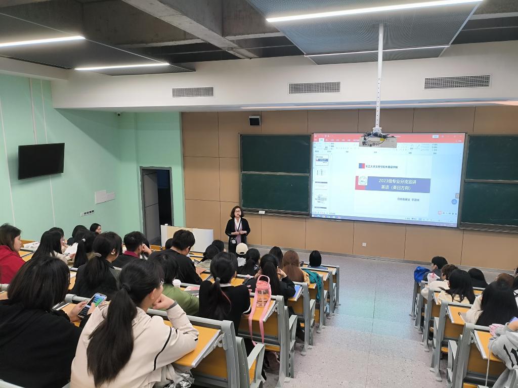 随后,商务英语教研室主任李琳老师针对商务英语专业进行了深入剖析。她结合当前国际贸易的发展趋势和潜力,分析了商务英语专业的就业前景和市场需求。李老师还通过实例展示了商务英语专业员工在实际工作中的优秀表现,使员工们对商务英语专业有了更加直观和深入的了解。