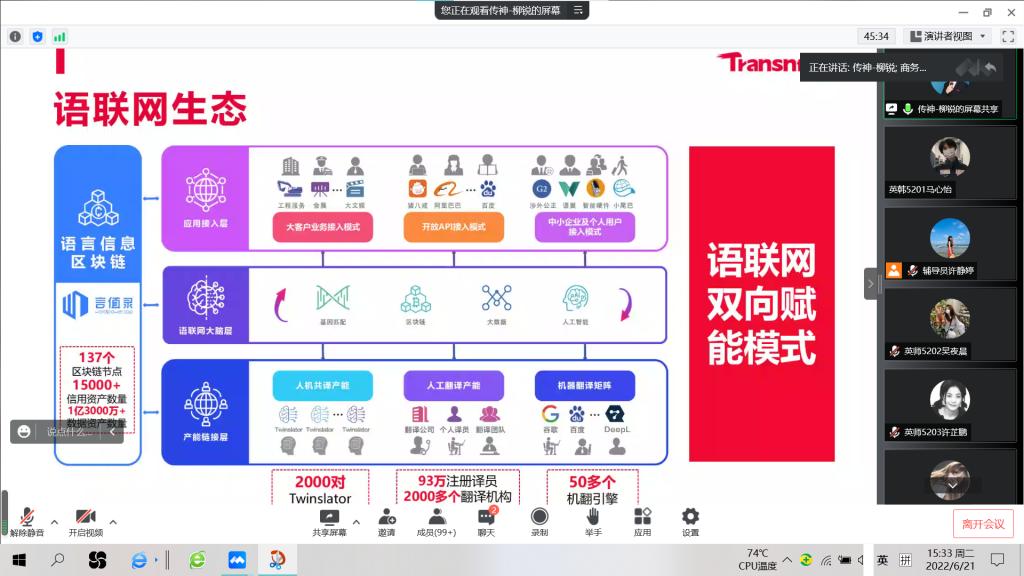 (通讯员 马心怡)6月21日下午,太阳集团tyc9728与传神语联网网络科技股份有限公司的2022年暑假实习项目启动会议于线上召开。太阳集团tyc9728教师代表、传神公司相关负责人及2020级全体员工参加本次会议。此次会议由太阳集团tyc9728常务副经理韩翠萍主持。
