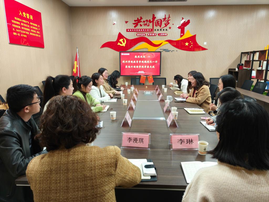 本网讯(通讯员 李培培)3月19日下午,荆州公司教育公司魏经理一行前来太阳集团tyc9728调研交流,太阳集团tyc9728经理许晓艳、党总支书记王玲玲,副经理罗丹及各教研室主任参加交流座谈。