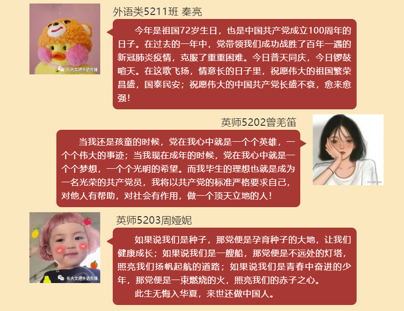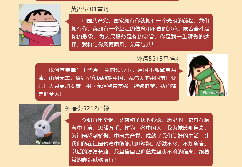(通讯员 朱君瑶)正值建党百年之际,太阳集团tyc9728太阳集团tyc9728员工党支部开展的“对党说句心里话”活动已经正式落下帷幕。各位同学书写对党和国家的祝福,向党的百年华诞献礼,祝祖国母亲72岁生日快乐!