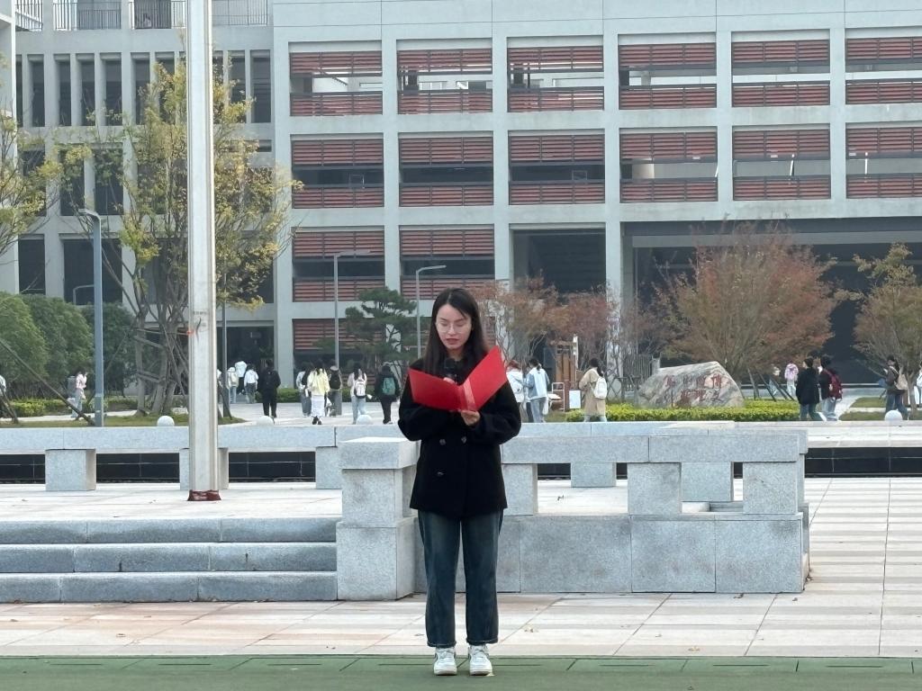 随后,员工代表苏悦发言。苏悦同学号召我们要奋斗不息,面对困难不停止前进的脚步。接着,教职工代表钟燚老师发言。鼓励同学们以青春之小我,书写强国之大我,在实现中华民族伟大复兴的征程中,绽放属于自己的璀璨光芒。