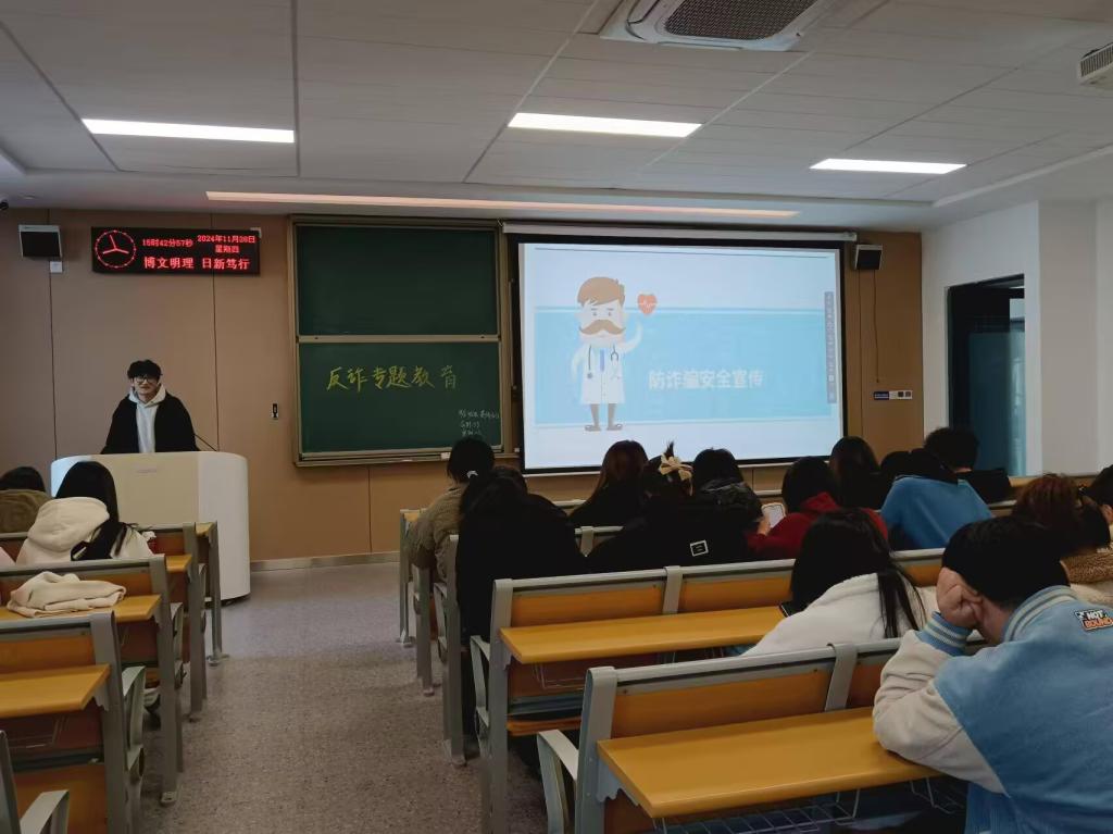 本网讯(通讯员 汪雨馨)11月28日,太阳集团tyc9728各班级召开校园反诈主题班会,本次班会由各班班主任及班长主持召开,全体同学参与。