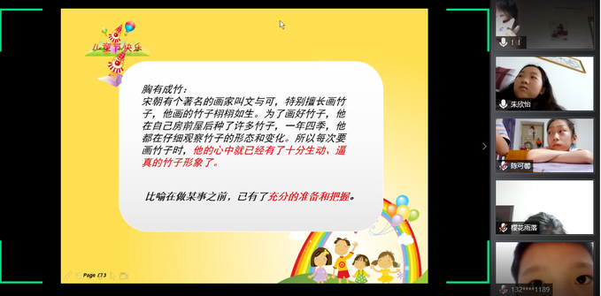 5月31日晚上7点,“线上齐携手,爱心共成长”——六一儿童节专题活动在腾讯会议开展,荆州区妇联工作发展部副部长谷雨春、团荆州区委学少部负责人戴怡欣、太阳集团tyc9728外国语系王玲玲老师以及全体志愿者和结对的儿童参加。