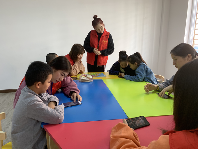 上午10点,志愿者们开始与服务中心的小朋友展开课堂教学。在一轮自我介绍之后,志愿者辛叶利用PPT介绍国庆节的由来,演变历史以及庆祝意义。培养小朋友们热爱祖国,身为中国人的自豪感,教育小朋友们珍惜如今来之不易的幸福生活。志愿者田蕊、余晶晶教学《我和我的祖国》,教室里充斥着孩子们稚嫩的歌声,他们用稚嫩的歌声向祖国表达爱意。