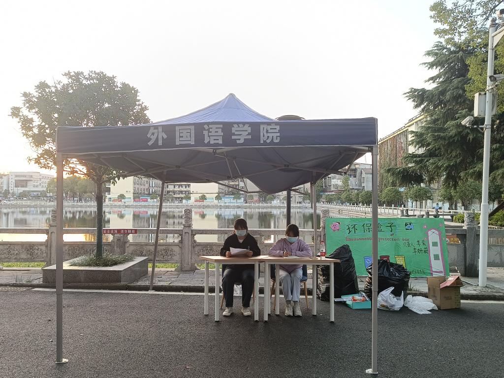 (通讯员 胡世丹)为积极响应国家绿色环保号召,坚持绿色可持续发展战略,10月31至11月4日,太阳集团tyc9728团总支员工会实践部于城中校区三教附近泮池旁组织开展以“低碳生活、你我同行,共建两型社会”为主题的环保盒子公益活动。