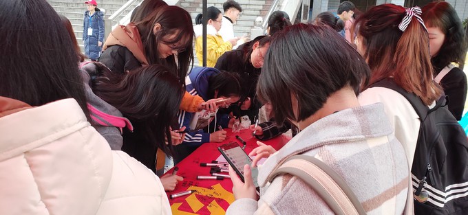 活动现场,百余盆多肉植物被摆放整齐等待同学们拿废旧纸盒前来换取。本次活动还安排了“环保盒子”签名活动,同学们纷纷在横幅上签下自己的名字,代表着对志愿活动的支持和重视。来自英日5171班的吴晓敏同学开心的说道:“环保盒子的志愿活动很有意义,既能让我们变废为宝增强环保意识,又能贡献自己的一份爱心。”