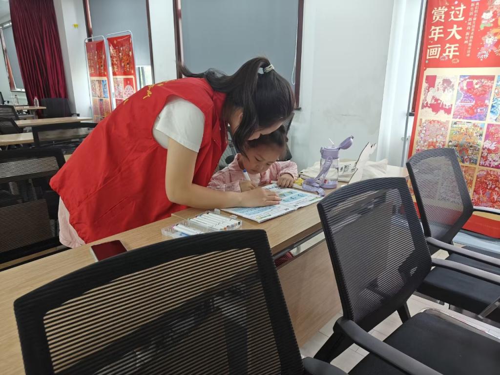 志愿者耐心地辅导着孩子们,孩子们脸上可爱天真的笑容和眼中对知识的渴望,都深刻感染着志愿者。完成作业后,志愿者陪着孩子们画画、唱歌、猜字谜,气氛十分活跃。悠闲的时光总是一晃而过,歌谣声伴随着笑闹声,本次支教志愿活动圆满结束。