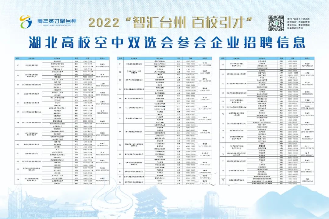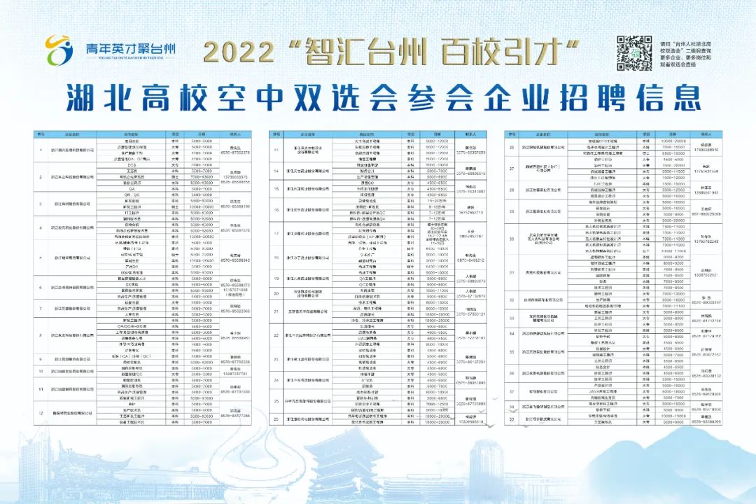 湖北作为台州赴外引才的主阵地之一,双方一直保持着广泛的交流和紧密的合作,为更好地搭建台州与湖北校地校企人才项目合作桥梁,促进台州企事业单位与湖北高校深入洽谈合作,结合当前疫情防控形势,拟举办2022“智汇台州 百校引才” 湖北高校空中双选会活动,诚邀贵校毕业生参会求职。活动初步安排如下: