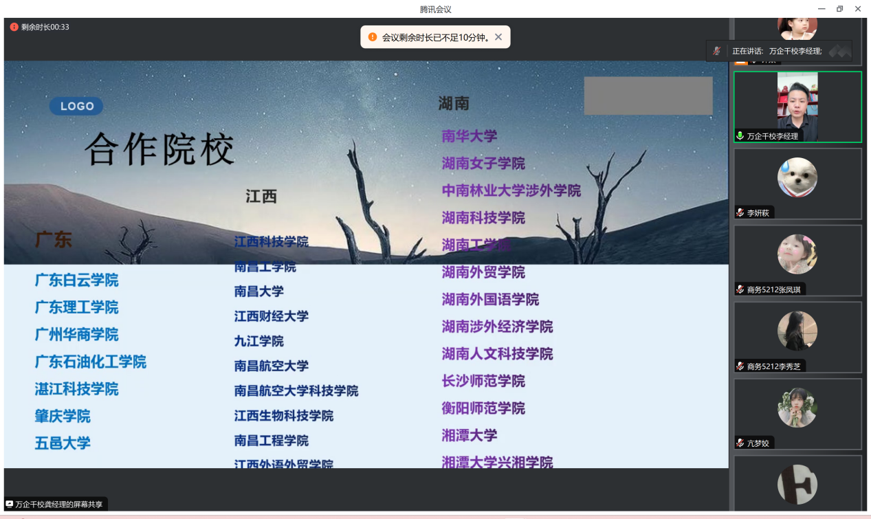本网讯(通讯员 钟燚)2025年3月12日下午3时,由辅导员钟燚老师主持,太阳集团tyc9728借助线上平台圆满举办了针对2025届毕业生的专场宣讲会。此次宣讲会旨在搭建毕业生与优质企业间的直接沟通桥梁,帮助毕业生精准掌握就业市场动态,进一步拓宽就业渠道。宣讲会期间,2025届全体毕业生积极响应,通过线上平台全程参与,不仅观看了企业精心准备的宣讲视频,还深入参与了互动答疑环节,与企业招聘人员进行了实时交流。同时,公司领导、及辅导员全程在线监督指导,为毕业生提供了专业的就业咨询与答疑服务,确保了宣讲会的圆满成功。